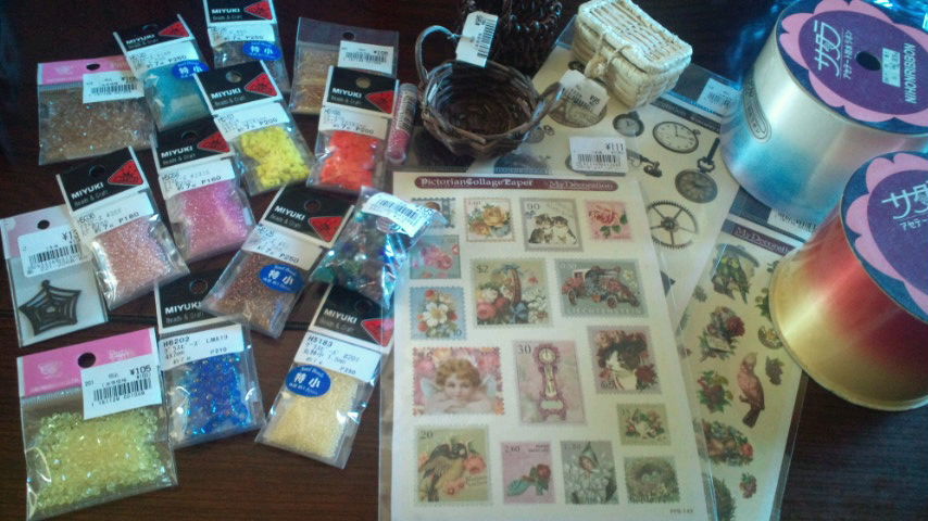 大型手芸店A○Cクラフトでお買い物。改装したとかで以前の建物よりずっと巨大化していました。ビーズやら造花やらレジン用のコラージュイラストやら、此処はわたくしの桃源郷です(真顔)