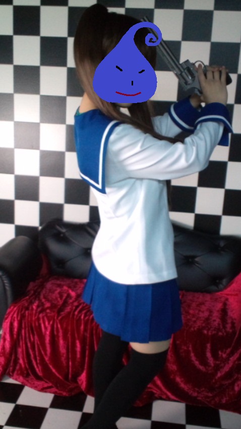 私「はい、もっと右。銃身ずれてる、もっと顎引いて」