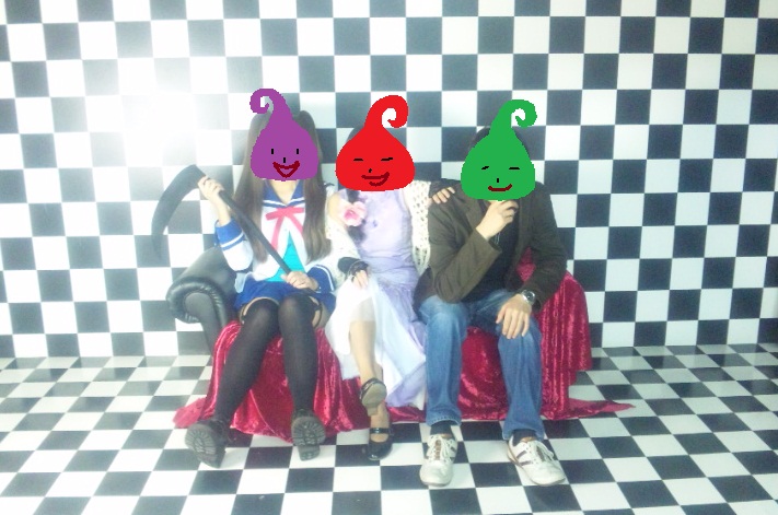 帰り際に、レジやってた赤の女王様とアリスメイドさんとみんなで記念写真を一枚。