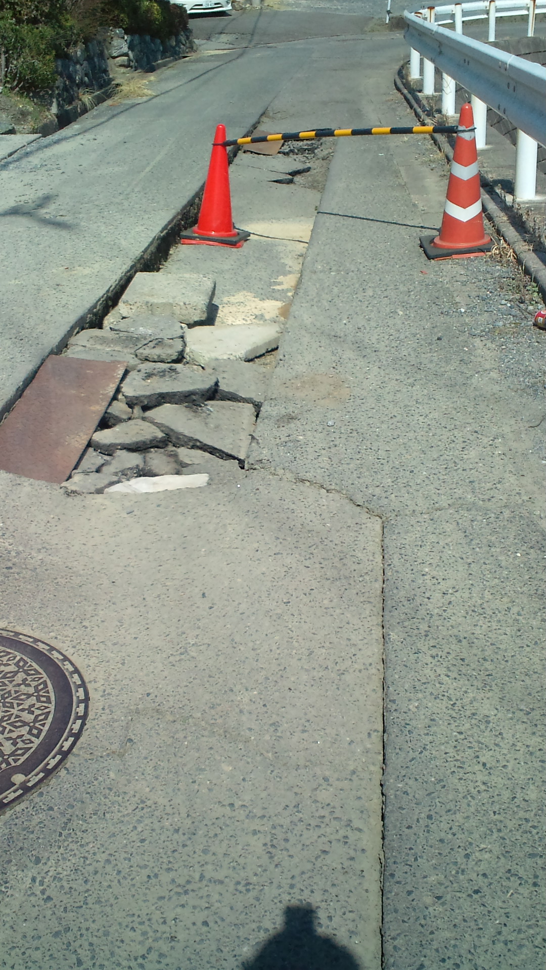 やっと帰宅が許可された私達は、数人ずつ固まって会社を後にした。町に出ると、そこらじゅうにガラスや屋根瓦の破片が散乱していた。工場の壁の高い箇所が一部剥がれ落ちていたり、ビルの壁面にヒビが入っている。アスファルトの地面が不自然に盛り上がっている場所がいくつもあった。マンションの入り口は、床のタイルが捲れて裏返っている。倒壊した建物は、今のところ見当たらなかった。