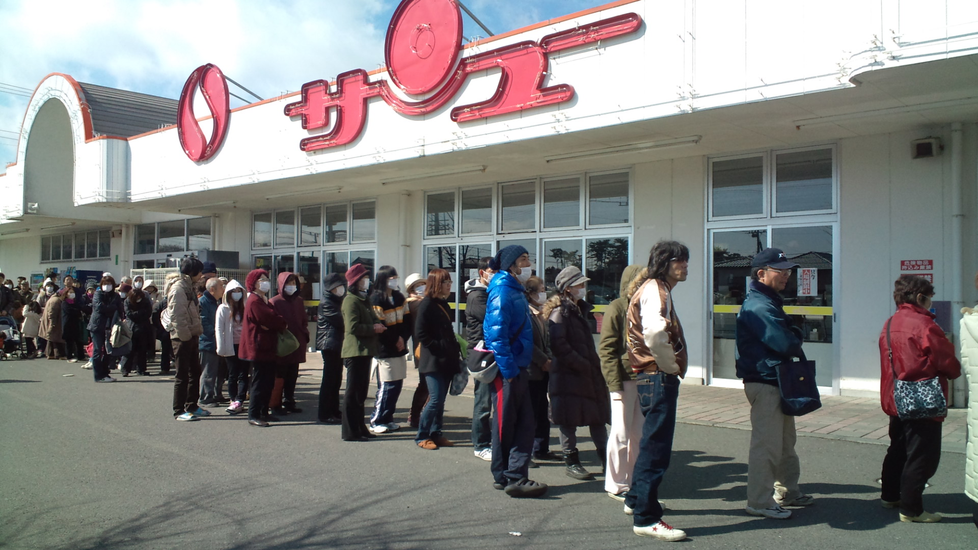 電気ガスは復旧した。いまだ断水が続いているけれど、地下水が出る場所が至る所にあるから、水問題は大したことない。コンビニやスーパー、ヨーカ堂は食料争奪戦的な事になってる。特にガソリン不足はやばいっぽい。スタンドが超大行列だった。